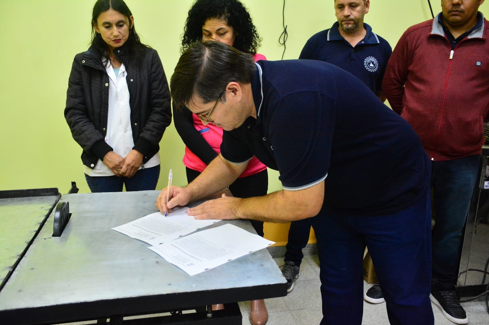 Una alumna de la cátedra mostró el funcionamiento de la maquinaria y recordó las medidas de seguridad a tener en cuenta antes de encenderla
