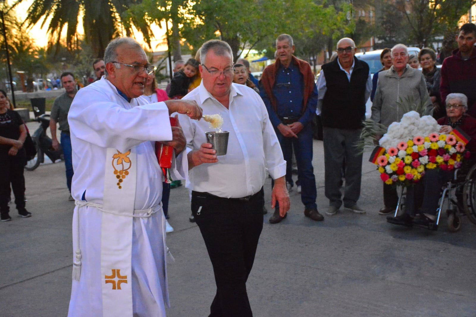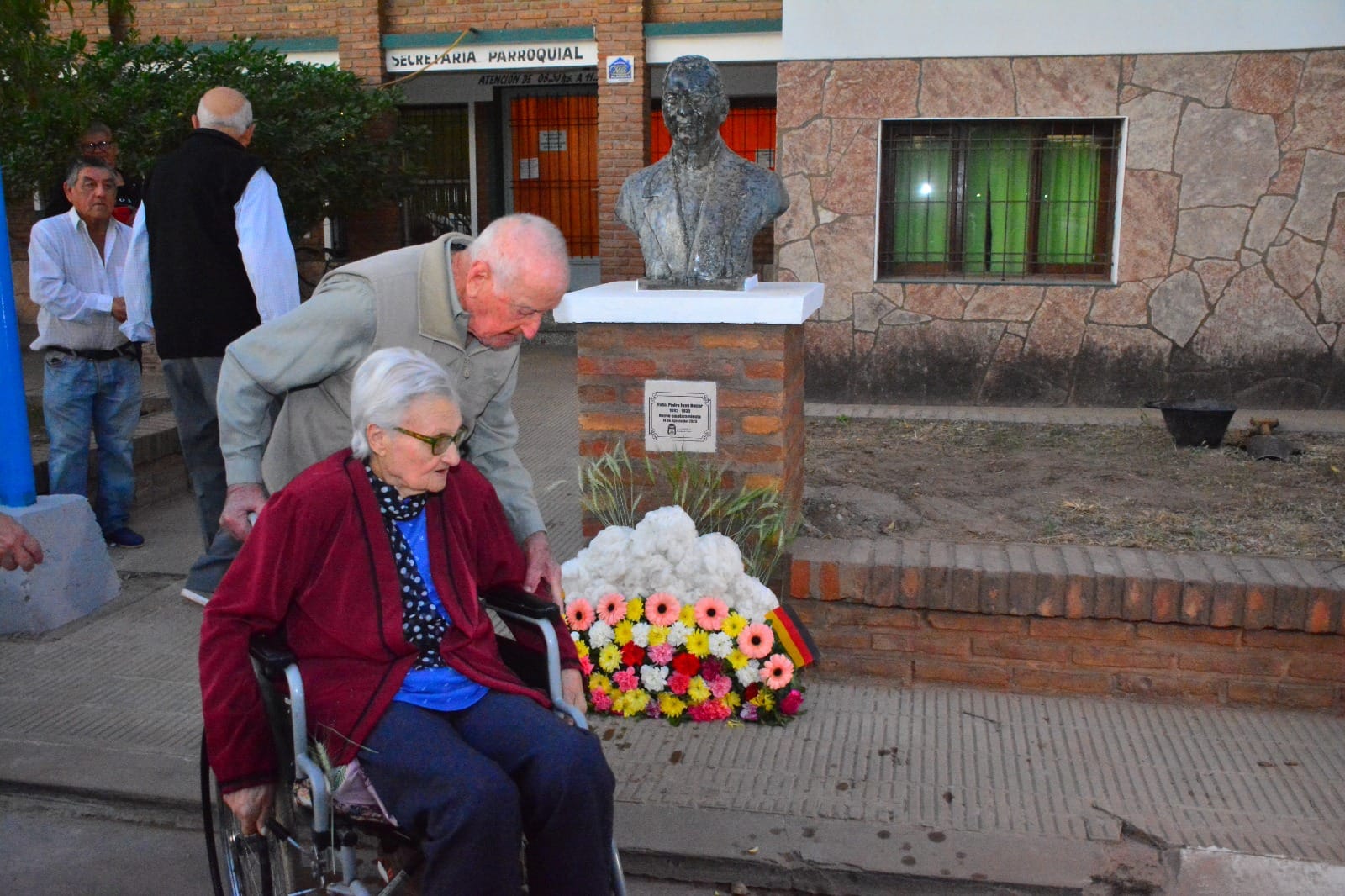 En vísperas de la inauguración de la plaza central el Párroco local Osvaldo Santillan junto al intendente Pio Sander procedieron a bendecir la imagen del Reverendo Padre Holzer que fuera reubicada frente a centro Catequístico Nuestra Sra del Valle.