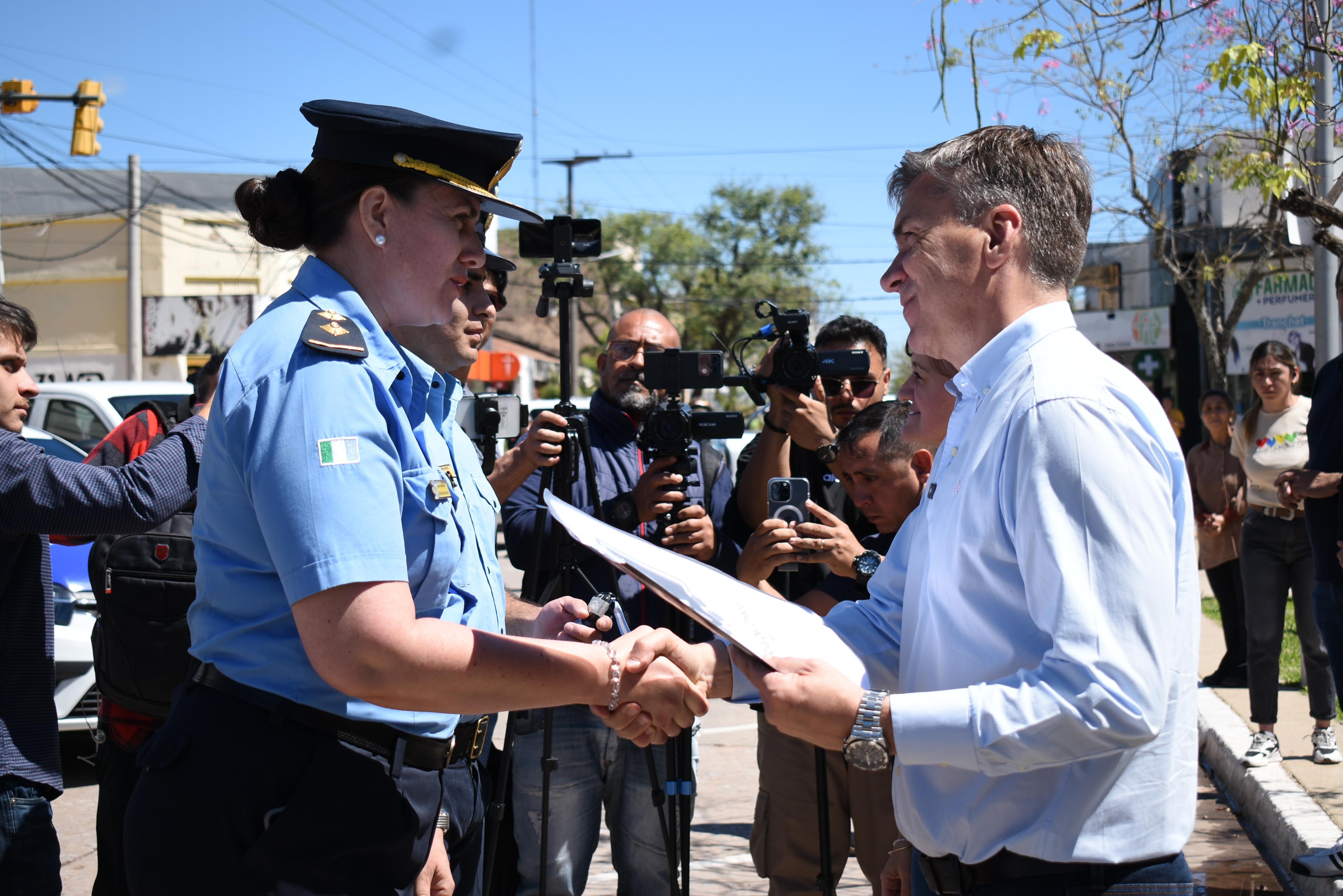Por primera vez en la historia de la provincia se entregaron chalecos balísticos para el personal femenino. “El objetivo siempre es ponernos del lado de la gente y no de los delincuentes”, aseguró Zdero y recordó que al iniciar la gestión había una deuda de 800 dispositivos antipánico y en estos dos años ya se entregaron 3.000.