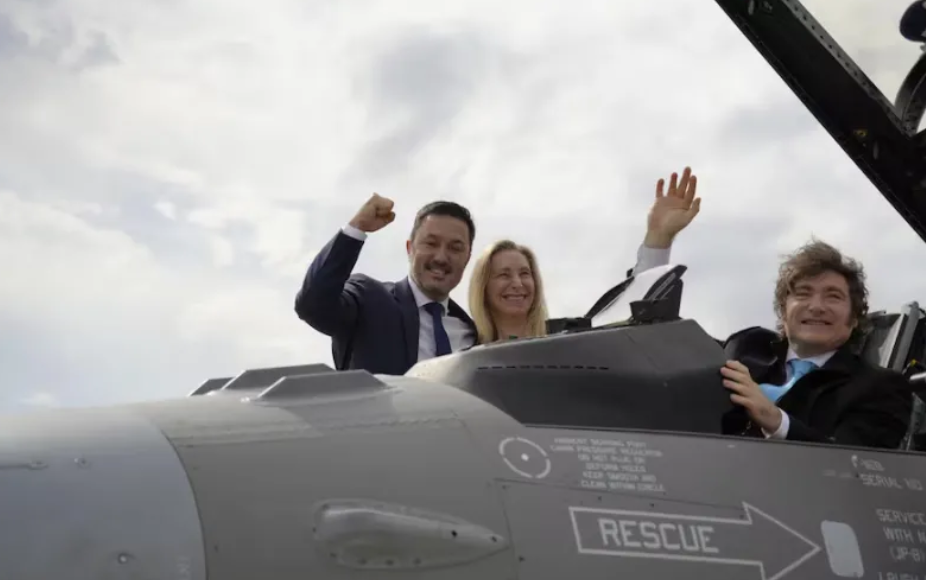 El presidente Javier Milei presentó este sábado la flota de aviones F-16 (son 24 en total) que el gobierno argentino le compró a Dinamarca. Seis de esas aeronaves hicieron, más temprano, un show con vuelos rasantes sobre el Obelisco y la Casa Rosada, en Buenos Aires.