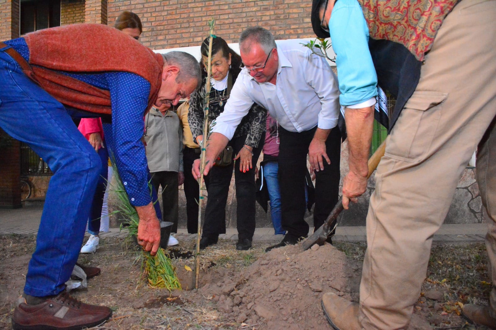 Seguidamente el Párroco local el intendente Pio Sander y la presidenta del Concejo Deliberante Soledad Rach procedieron a plantar un olivo, árbol emblemático entre los cristianos.
