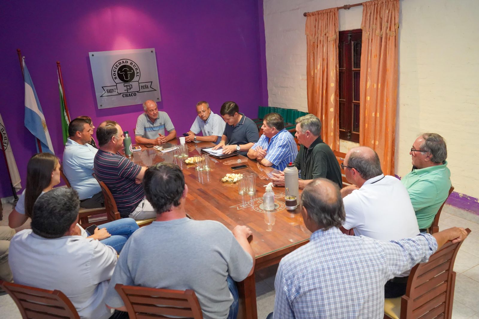 El ministro de la Producción y el Desarrollo Económico Sostenible, Hernán Halavacs, acompañado del intendente de Sáenz Peña, Bruno Cipolini, y el subsecretario de Agricultura, Oscar Pascual, se reunió con representantes de la Sociedad Rural local y de la Federación Agraria