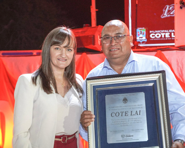La vicegobernadora del Chaco, Silvana Schneider, junto al intendente Anselmo “Leli” Bordón acompañaron el acto central del 120° aniversario de Cote Lai, en una celebración que reunió a vecinos, instituciones, artistas y emprendedores.