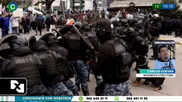 El secretario general de UTrE CTERA, Carlos Cuevas, viajó al norte del país para brindar su apoyo a la comunidad docente y los pueblos originarios jujeños víctimas de una brutal represión por parte de las fuerzas de seguridad del gobierno de Gerardo Morales y para participar el jueves del plenario nacional de CTERA en esa ciudad capital.